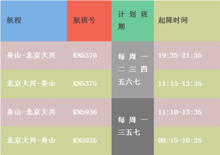 舟山飞这两地有新选择