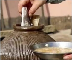将晒干的鱼切成块,先将鱼块放入酒酿中充分浸润,再放入酒瓮里,将浸湿的鱼块一层层码好。等所有鱼块都放入后,倒入余下酒酿,直至漫过鱼块,最后盖上盖子密封储存。