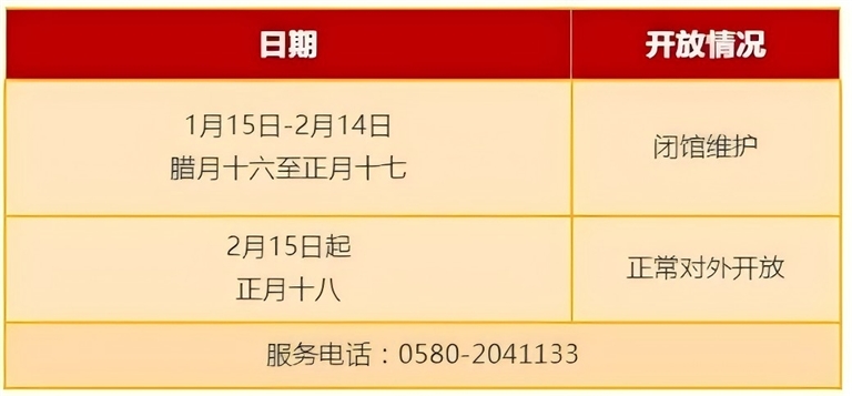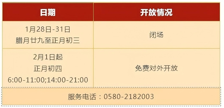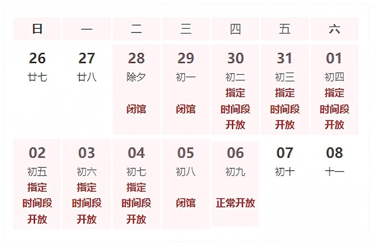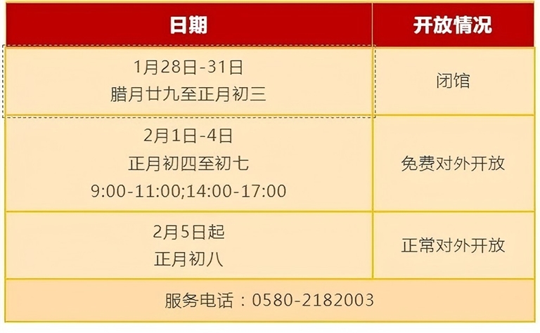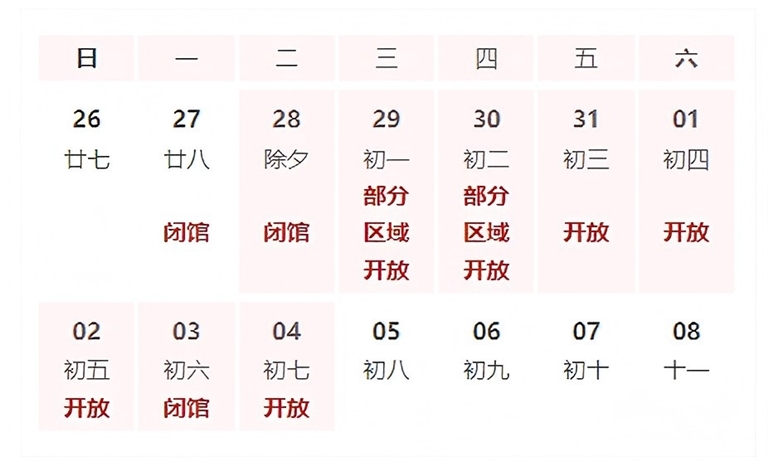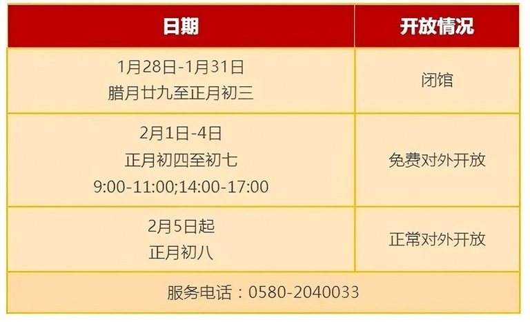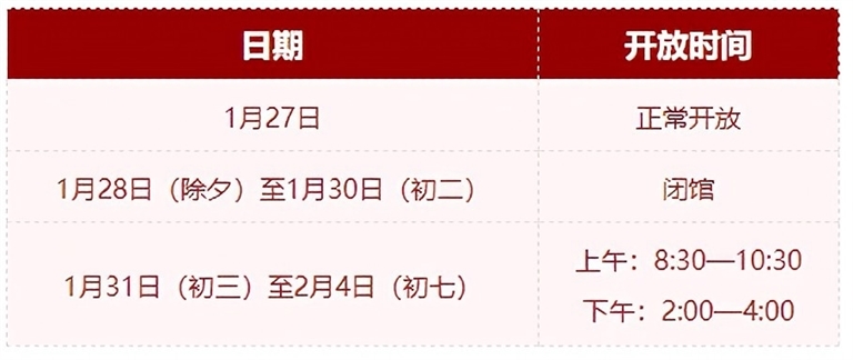 ②1月29日—2月4日(初一至初七)免费对外开放(网上停止预约)