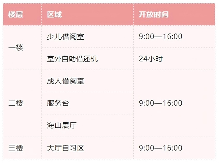 9:00至16:00全馆各区域开放