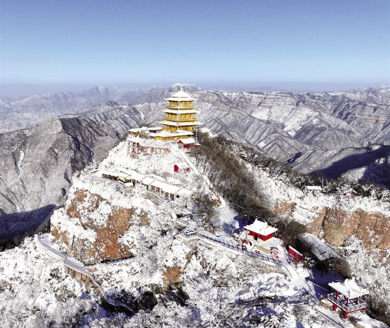 1月26日拍摄的河南省济源市王屋山雪景(无人机照片)。