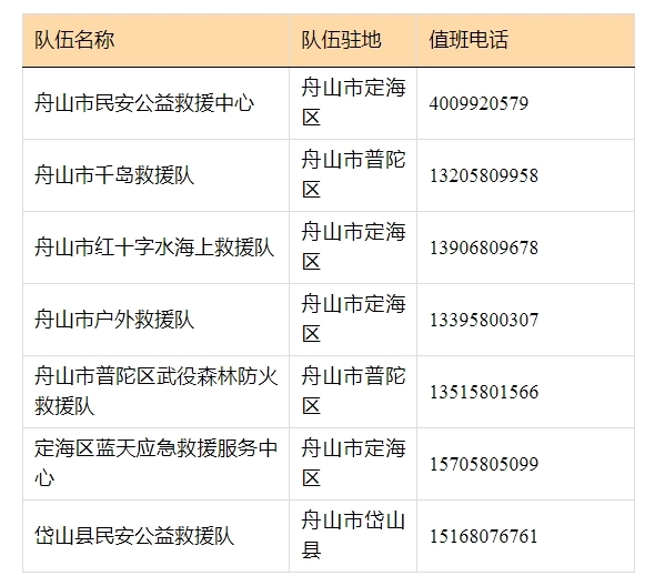 据浙江发布微信公众号消息 为进一步加强应急处置能力,保障人民群众生命和财产安全,让群众过一个欢乐平安祥和的节日,浙江对外公布全省152支社会应急救援队伍值班电话。其中,舟山有7支社会应急救援队伍。若你身边有人需要紧急救援,可拨打以下电话。