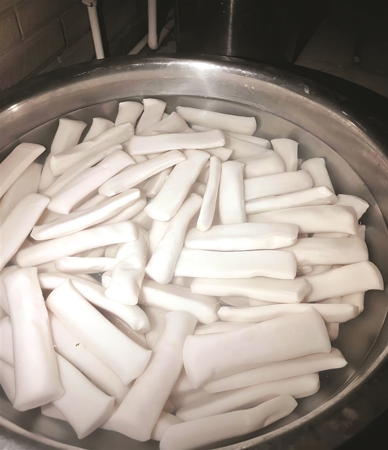 “我家现在就是这样,厨房大小脸盆里养着年糕,从我放假回家开始,几乎顿顿都是青菜年糕。”宁波姑娘小邵笑着告诉记者,每年过年村里都会组织打年糕,“从做好那天起,大家过年期间的使命就是消灭年糕。”