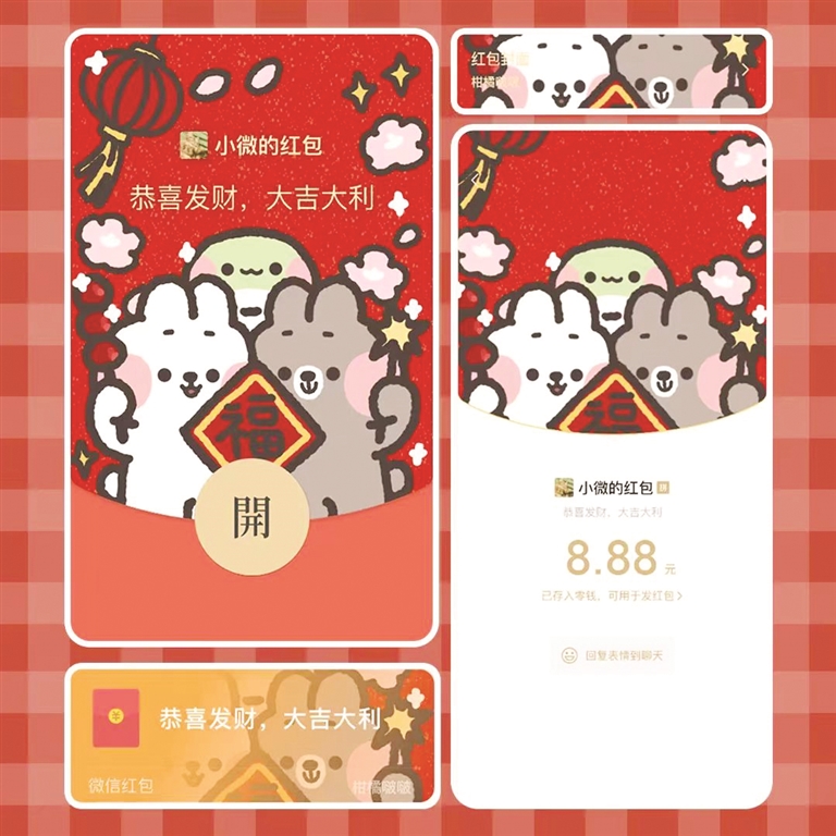 “我的过年三件套是新年拜年表情包、拜年文案、红包封面三件套。”00后大学生小许告诉记者,今年春节,她置办了多款拜年表情包。