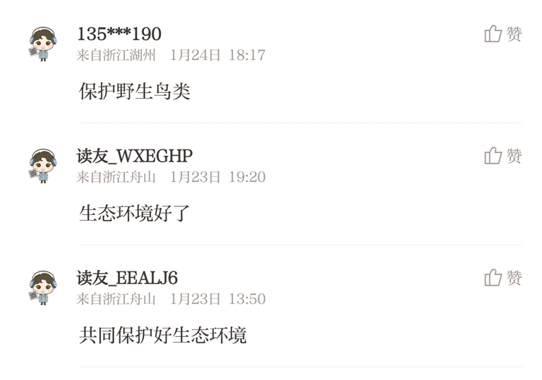 在经济社会快速发展的当下,要做到对包括鸟类在内的野生动物“不打扰”并非易事,很多情况下甚至需要人类活动退避三舍。值得欣慰的是,保护绿水青山、维护生态和谐日益成为全社会的普遍自觉。在舟山,渔民总在放生误入渔网的珍稀鱼类,市民总会积极救助受伤受困的鸟类,人们对野生动物毁坏庄稼现象也抱着更加宽容的态度。这种根植于民间的生态意识和文明素养,与良好的海岛自然环境同频共振。