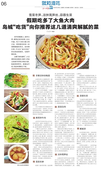 岛城“吃货”向你推荐这几道清爽解腻的菜