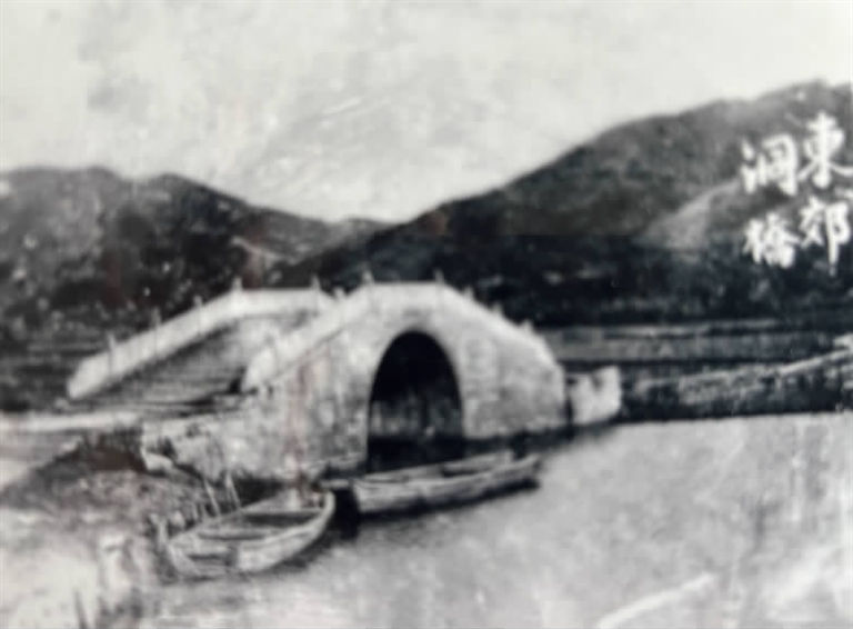东城门外濠河深广,上架一座精美的拱形石桥,名“东美桥”。东美桥的桥栏和石柱上都有图案雕刻。过东美桥循着大路往前约50米,又有一条宽阔的大河,河上又有一座拱形石桥,叫“洞桥”。东城门外有两条大河,两座拱形桥,河边绿树成荫,河中舟楫往来,欸乃之声不绝,周围则是大片稻田,这是城外的景色。