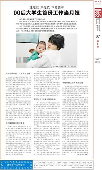 00后大学生首份工作当月嫂