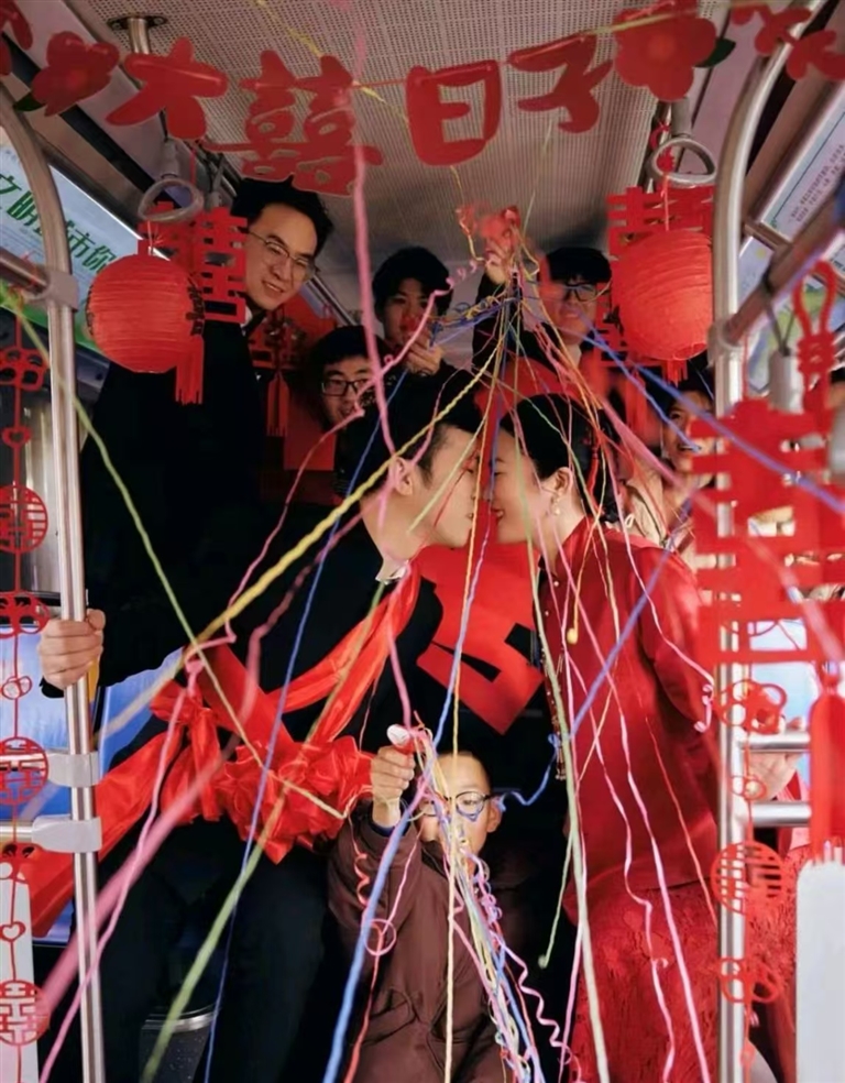 城市公交变身浪漫“婚车”