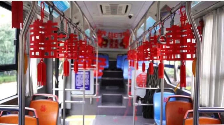 与传统婚车相比,环保、经济且富有特色的“公交婚车”空间更为宽敞,新人与亲朋好友一路欢歌笑语,奔赴“下一站,幸福”,诠释出别样浪漫。裴先生说:“我们在一起接受祝福,唱歌,大家其乐融融,比在轿车里更有氛围感。”