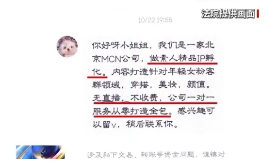 2023年10月,大学生小关(化名)在某社交平台上收到一条私信。对方自称北京某传媒公司,表示小关形象气质好,符合公司培养条件,可以免费提供“素人精品IP孵化”服务,并希望与其签约。