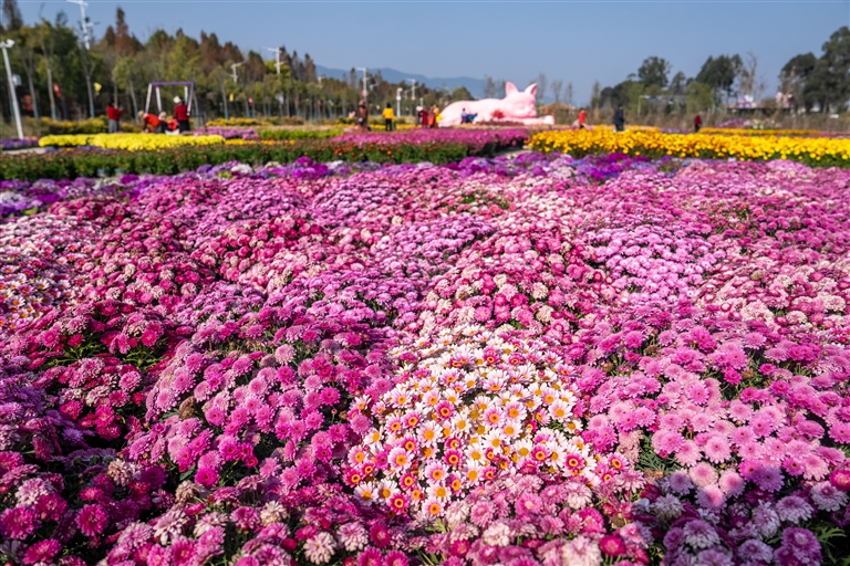 近日,位于云南省昆明市的海洪莫奈花园正式向公众开放,五彩斑斓的花海吸引了不少市民、游客前来观赏打卡,定格春日浪漫瞬间。新华社记者 胡超 摄