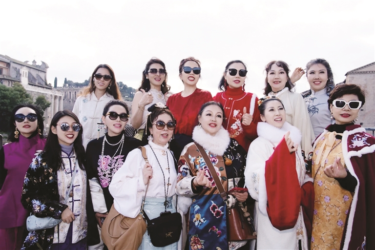 得知抵达罗马后还有几天空闲时间,阿姨们每人购买了一套汉服塞进行李箱,准备在走秀前一天去威尼斯广场等罗马景点先“秀一秀”。