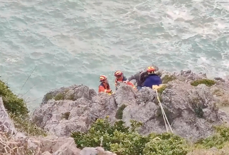 2月21日21时40分左右,嵊泗消防救援大队接到报警,嵊泗县壁下岛悬崖下有一名男子被困。面对漆黑的海面和绝壁,情况十分危急。