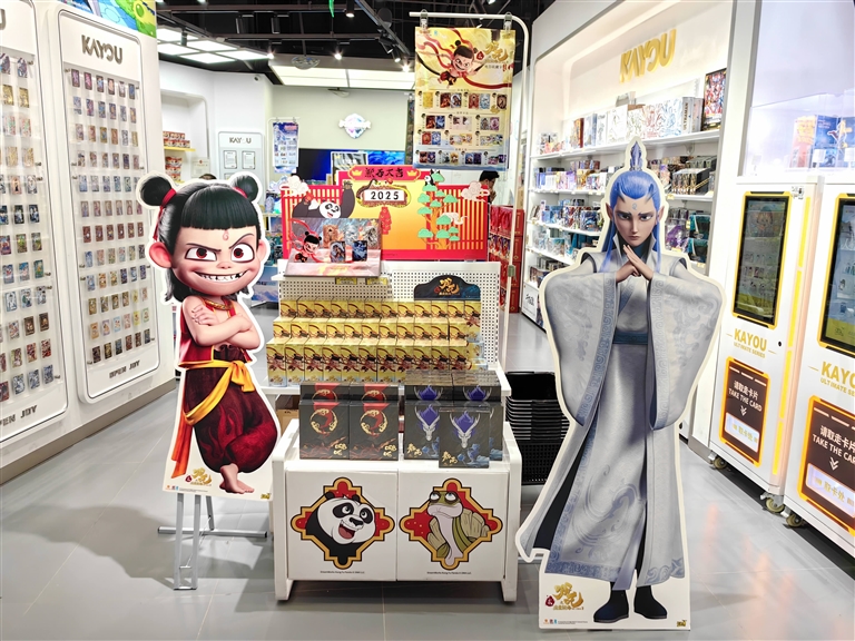 张毅表示,《哪吒2》这类国产电影IP对传统文化内核有着独特的诠释,电影里哪吒的形象、神话元素被融入手办、衣服等商品,引发消费者的购买热情。