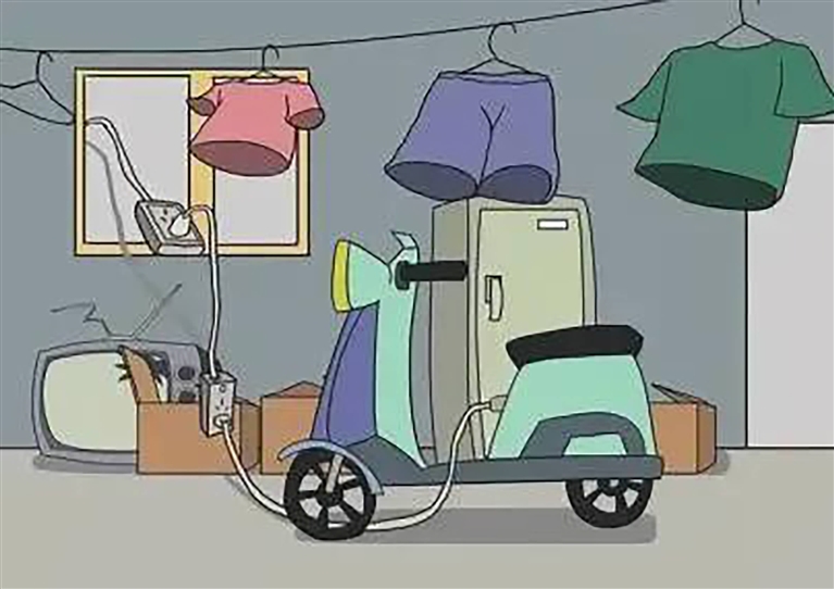 电动车充电要远离易燃可燃材料搭建的电动自行车停放场所和易燃易爆物品。