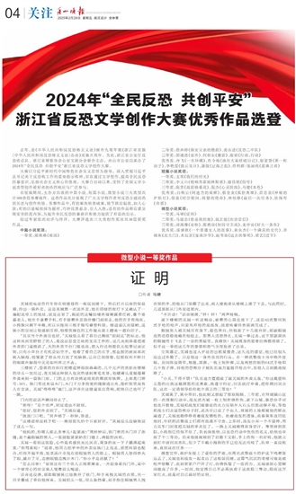 2024年“全民反恐 共创平安”浙江省反恐文学创作大赛优秀作品选登
