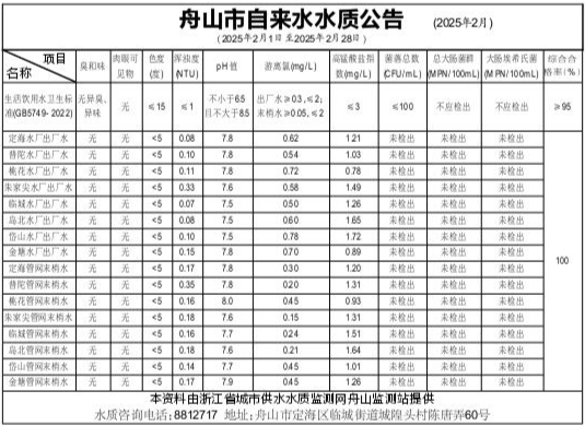 舟山市自来水水质公告