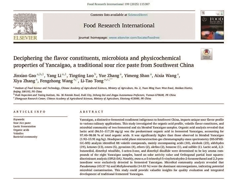 一年后,一篇创意满满的论文《发酵和勾兑腌菜膏挥发性化合物、微生物组成和理化性质的比较》登上了国际学术期刊《Food Research International》,论文中将腌菜膏英译为“Yancaigao”,也让网友打趣:“在国际学术期刊上,看到了好小众的文字!”