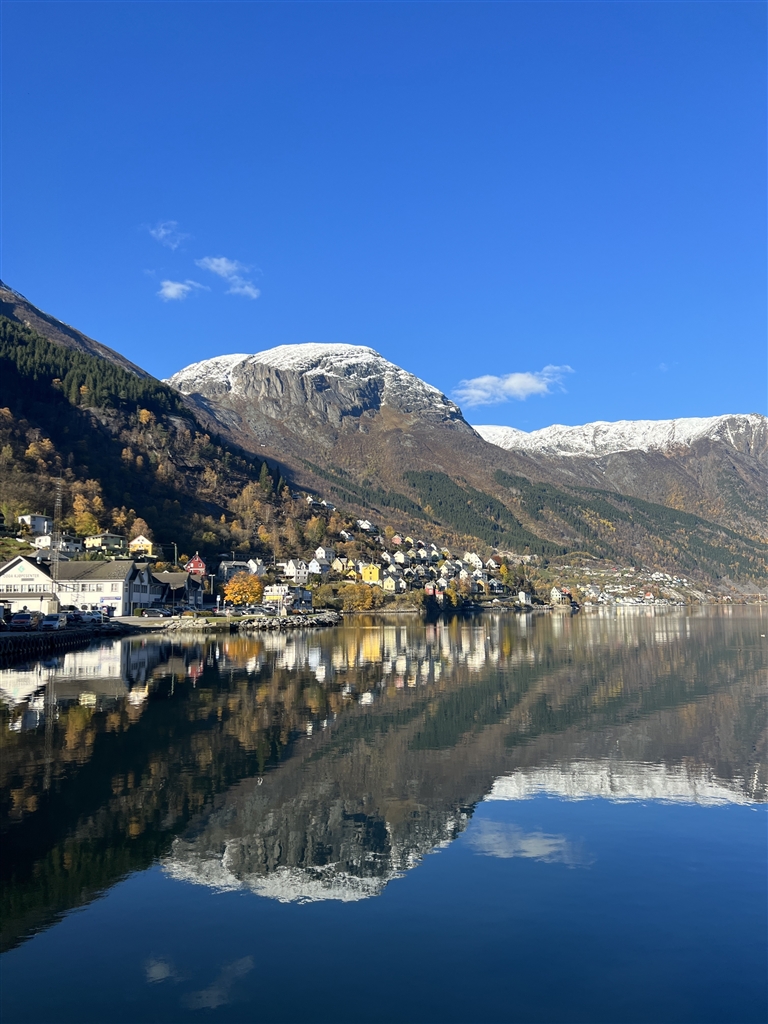 我听在挪威的舟山老乡说,当地的气候是几个北欧国家中和舟山最接近的,也是在海边,吃海鲜不用愁。我现在工作在峡湾小镇奥达,那里相当于一个景区,有山有海。海水是顺着山峡倒灌进来的,所以平时基本上风平浪静,看着也是湛蓝清澈。