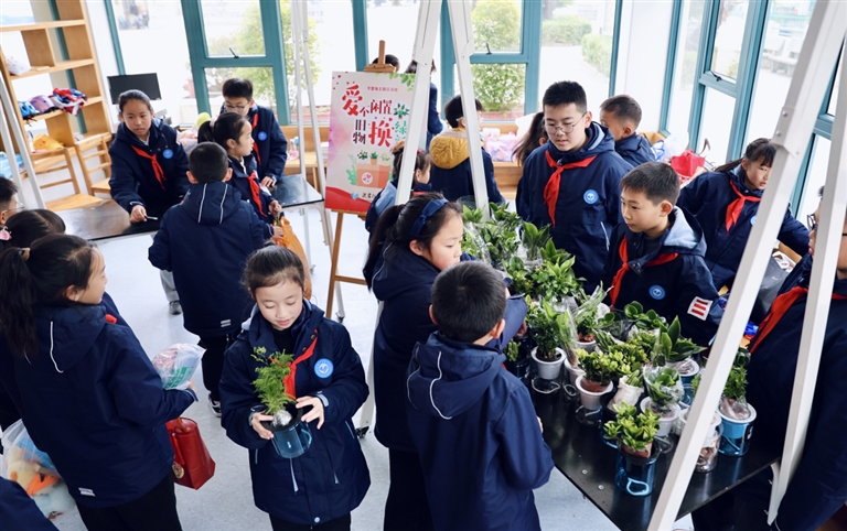 近日,沈家门第四小学组织开展了主题为“爱不闲置·旧物换新绿”学雷锋爱心义卖活动。学生积极捐赠种类丰富的闲置物品,除兑换绿植装饰班级外,还在校内外组织爱心义卖,并将义卖所得全部捐助给普陀区网络义工协会,用以帮助特殊群体人士,为他们送去温暖与希望。通讯员 俞依玲 摄