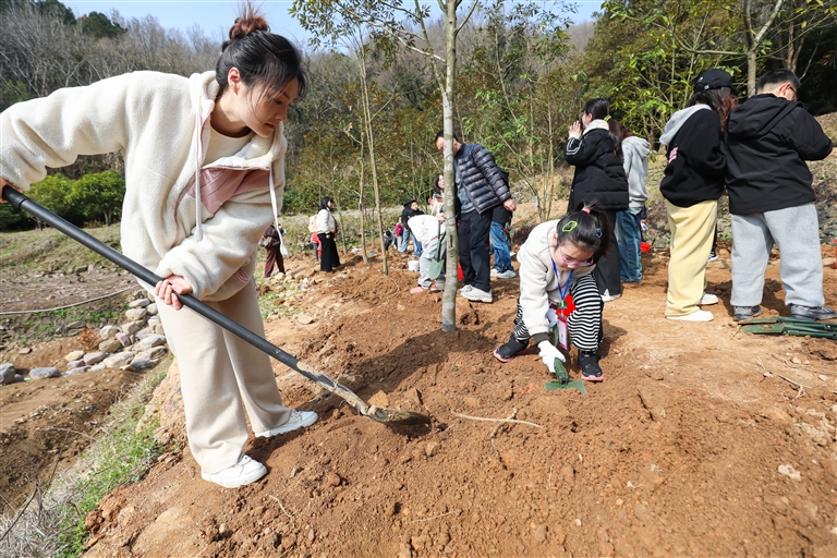 近日,舟山传媒小记者和家长们来到普陀区互联网+全民义务植树基地,亲手栽下一棵棵舟山新木姜子树,并挂上专属二维码。市自然资源和规划局普陀分局的工作人员还向小记者们讲解了舟山新木姜子树的相关知识。记者 张磊 摄