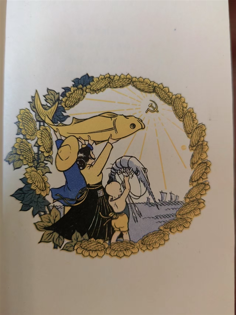 上世纪60年代,我国印刷技术还十分落后,出版的书籍大多黑白印刷,纸张粗糙,油墨浓重,但让人意想不到的是,这部上海文艺出版社1960年6月1版1印、印数只有2000册的《舟山渔歌选》却配有四张彩印插图,实属罕见,实属惊艳。