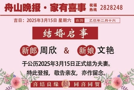 《 舟山晚报 》( 2025年03月15日 第 02 版 )