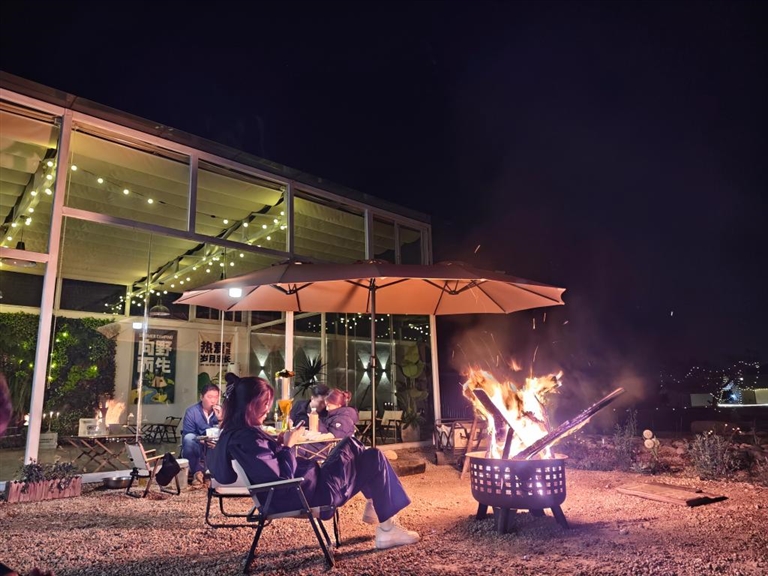 客人在星月手作农场欣赏篝火