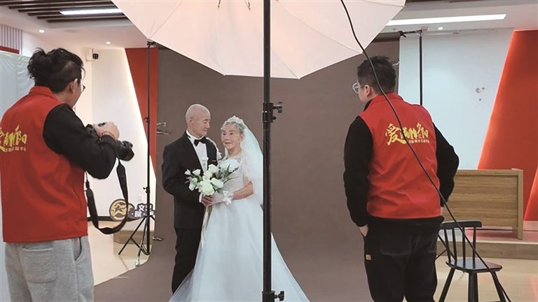 本报讯 为进一步弘扬中华民族“尊老、敬老、爱老、助老”的优良传统美德,日前,定海区昌国街道文慧社区党总支携手哈尼儿童摄影团队温情推出“银龄慧影·时光印记”项目,为中老年夫妇拍摄婚纱照,记录美好时刻。
