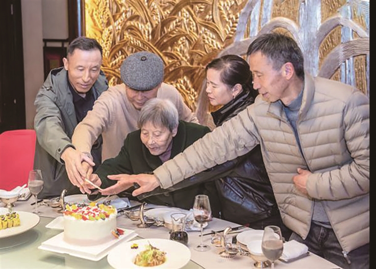 在志愿者热心的帮助下,一家人在余姚宾馆吃上了阔别61年的团圆宴。