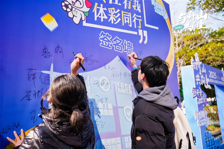 参赛选手们以脚步丈量舟山城市高度,在攀登中感受海岛独特魅力。在赛事嘉年华区域,舟山体彩精心打造两大互动专区,即开票体验区、责任宣传区。现场一位参与签名的市民感慨:“原来体彩公益金支持了这么多体育设施,购彩也是为城市做贡献!”活动现场,舟山体彩还定制了特色相框,选手可现场打印精彩瞬间,将美好记忆带回家。