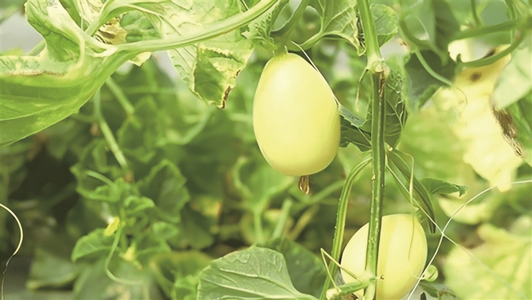 2023年,台州籍种植户马天雷等从普陀登步岛引进黄金瓜苗在定海马目试种,并应用吊种技术,成功实现错峰上市。