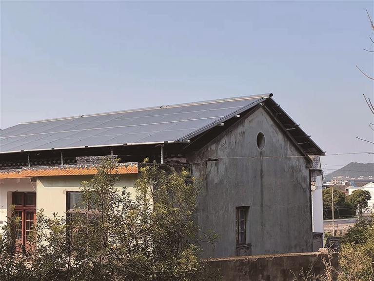 这家公司在舟山已有租下农房屋顶做“光伏电站”的例子。根据提示,记者在定海小沙光华社区找到了一幢闲置的农村楼房,屋顶已经装上光伏板(如图)。看其安装施工质量,下面用钢结构固定,光伏板铺设还算齐整,看起来与周边的农房瓦片屋顶相比,不算突兀。