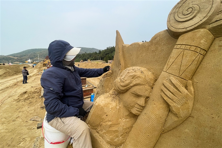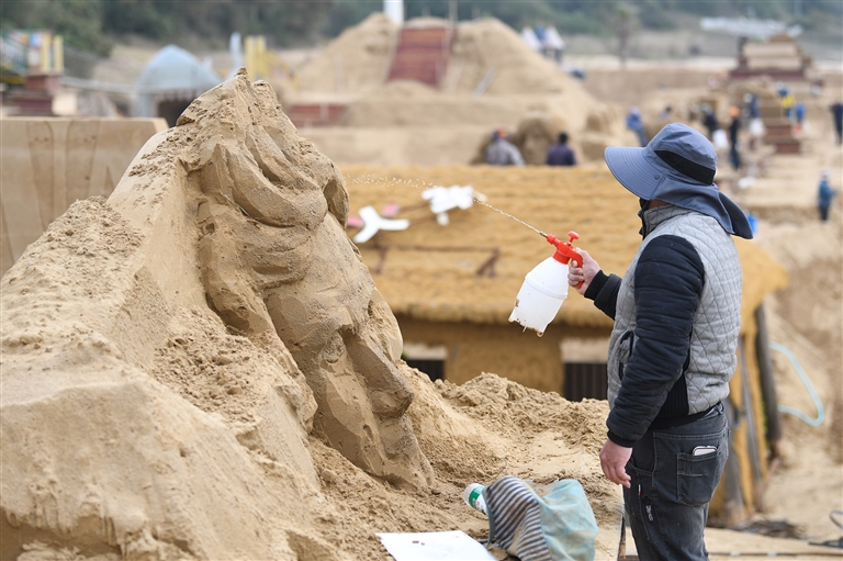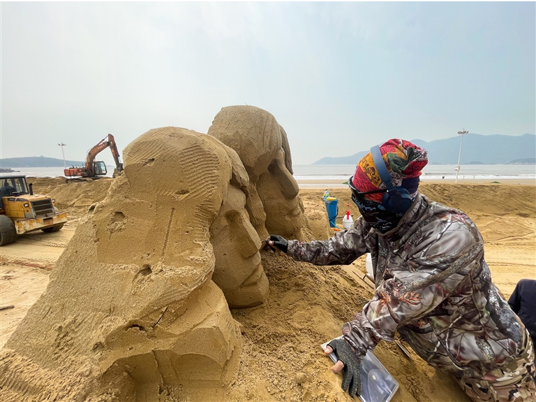 昨天,第二十六届中国舟山国际沙雕节核心创作阶段在朱家尖南沙景区拉开帷幕。来自全国30余位顶尖沙雕艺术家齐聚东海之滨,以“音乐南沙”为主题,开启为期25天的艺术雕刻工程。本届沙雕节将通过超50组音乐主题作品、沉浸式互动场景及多元文化活动,打造全球首个“可听、可玩、可感”的沙雕艺术综合体。记者 姚凯乐 通讯员 翁宇 摄