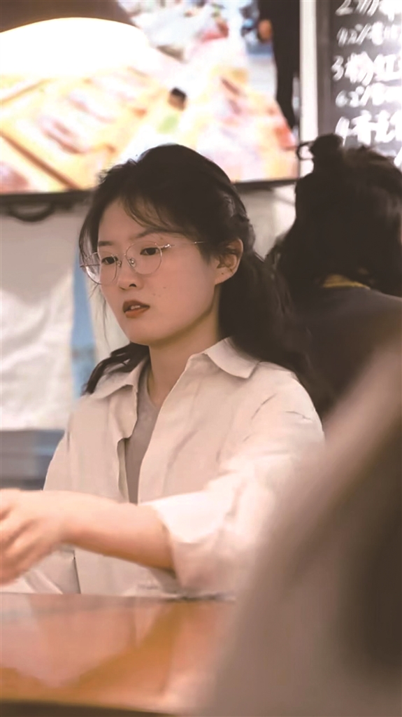很多人都叫杨茹冰“蓝鲸小姐”,女性心思更细腻,再加上她天然的亲切感和笑容,让来到店里的顾客觉得温暖。她时不时还会充当“情绪小雷达”或是沟通大使,有女生吃东西时没系发绳,她会注意到并准备。“前段时间,有个美国顾客特别喜欢吃我们的一款炸鸡,但下市了,我和她说,下次来店可以提前打招呼,我们会准备。”杨茹冰说,她希望顾客们能感受到店里的诚意以及温暖。