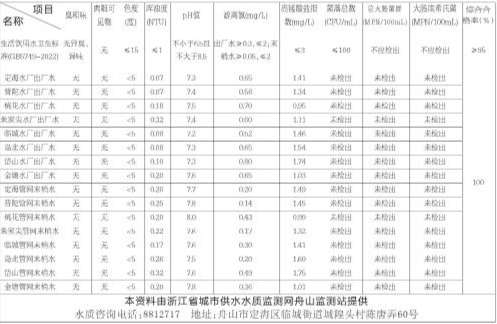 舟山市自来水水质公告