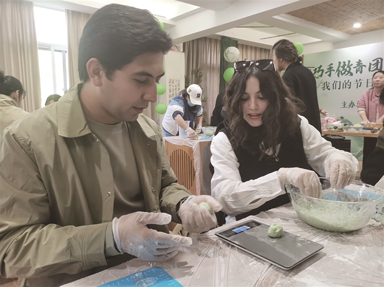 4月2日,趁着货轮在岱山维修的空隙,在边检民警的陪同下,两对伊朗籍的国际海员夫妻来到岱山县新时代文明实践中心,参加由岱山县文明办主办的舟山传统青饼制作活动,现场感受中华传统文化。“这是我第一次做青饼,非常有意思。我想把它带回家,让家人和朋友一起品尝。”NEZAMI MARZIEH说道。