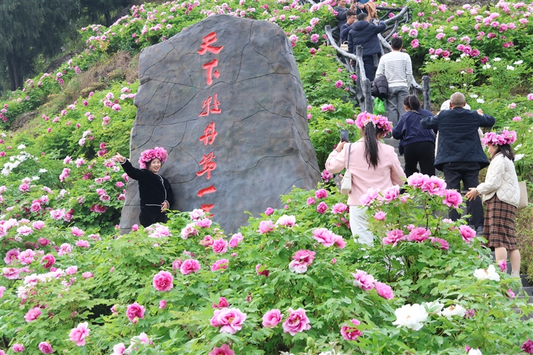 清明时节,位于重庆市垫江县境内的恺之峰旅游区迎来牡丹盛放期,吸引众多游客前来观赏、游览。