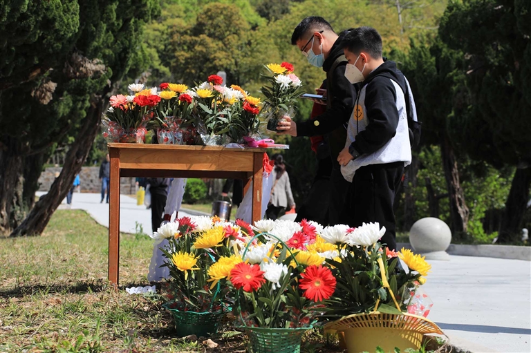 昨天,在我市各大墓园,市民纷纷购买鲜花祭奠亲人。我市文明祭扫蔚然成风。记者 陈永建 摄