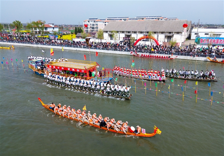 当日是清明节,江苏省兴化市举行一年一度的茅山会船盛会。茅山会船始于南宋,2014年被列入国家级非物质文化遗产名录。 新华社发(顾继红 摄)