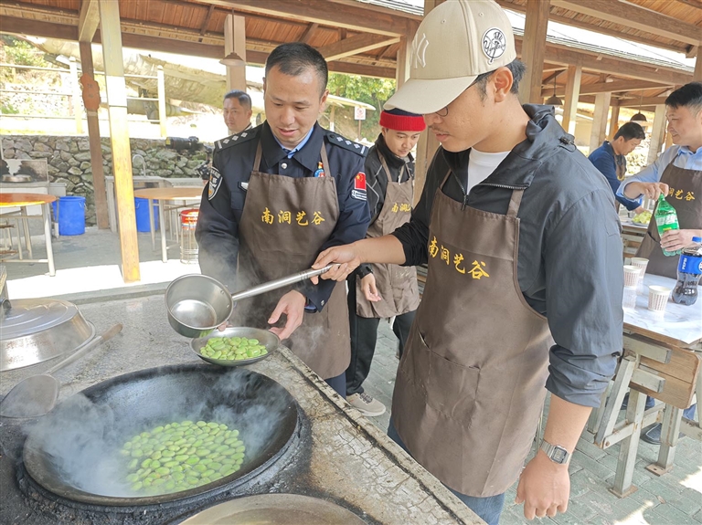 清明小长假最后一天,在舟山工作的4名印尼船东代表来到干石览镇新建村,与舟山市民游客一起在春光里探访这座美丽村庄,感受舟山乡村面貌。