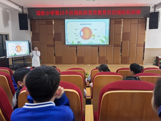 近日,定海区廷佐小学一年级学生参加了一场生动有趣的眼知识科普讲座。讲座不仅给学生普及了近视眼的成因、预防措施和眼睛保健知识,也提高了他们爱眼护眼的意识。