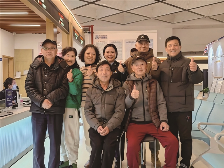 老人们提议拍摄一张小团圆的照片,在公安窗口工作人员的帮助下,这一刻的“重逢”在普陀区政务服务管理中心被永恒地定格。