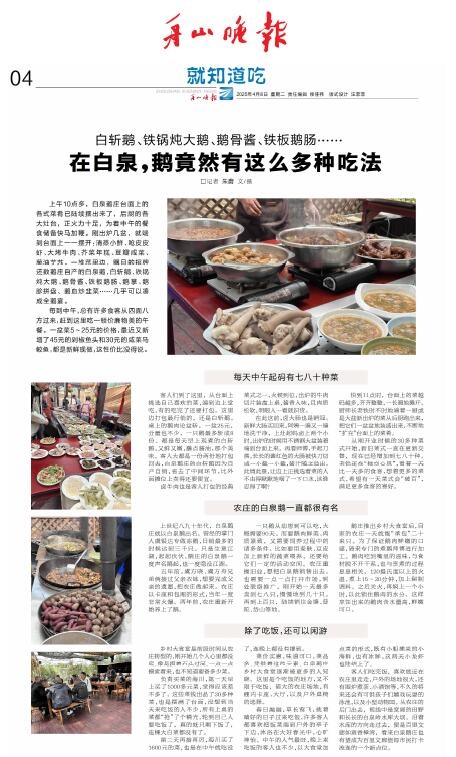 白泉鹅庄在美食传承与经营创新方面,为行业树立了优秀榜样,为食客带来了惊喜。希望我市更多商家从中借鉴,携手推动地方美食与休闲产业蓬勃发展,为我市旅游业发展和乡村振兴助力。