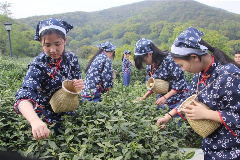 4月10日,普陀六横五星村茶园,六横镇峧头初级中学学生兴致勃勃地采摘春茶。虽然采摘手法稍显生疏,但经过带队师傅手把手教授,她们很快就掌握了采摘方法,不一会小小的背箩里装满了绿油油的新茶。据介绍,从本学期开始,该学校相继推出了劳动、摄影、书法、海洋剪纸、舟山船拳等拓展课程。通讯员 刘生国 胡峰松 摄