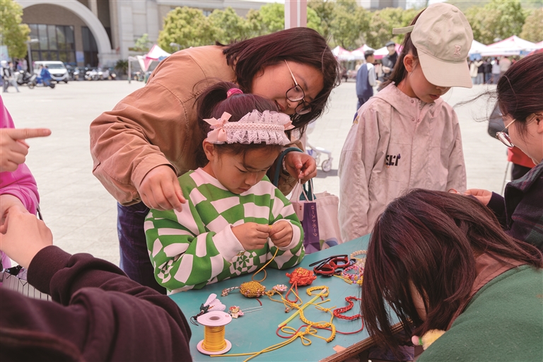 图为小朋友编织渔绳结,感受古人智慧与现代技艺的融合。通讯员 沈家迪 摄