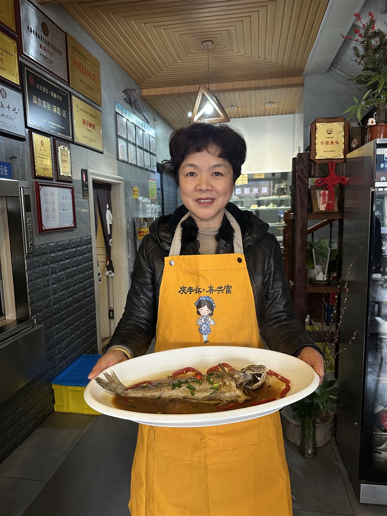 有些客人吃饱喝足后,会和严爱君聊会天,听听关于册子鮸鱼的故事。严爱君已经数不清自己口口相传了多少次童年时的回忆,今年58岁的她,在十多年的餐馆经营中,不断传播着册子鮸鱼的美名,让册子鮸鱼的历史发展和文化记忆得以传承,内心也有一种自豪感。