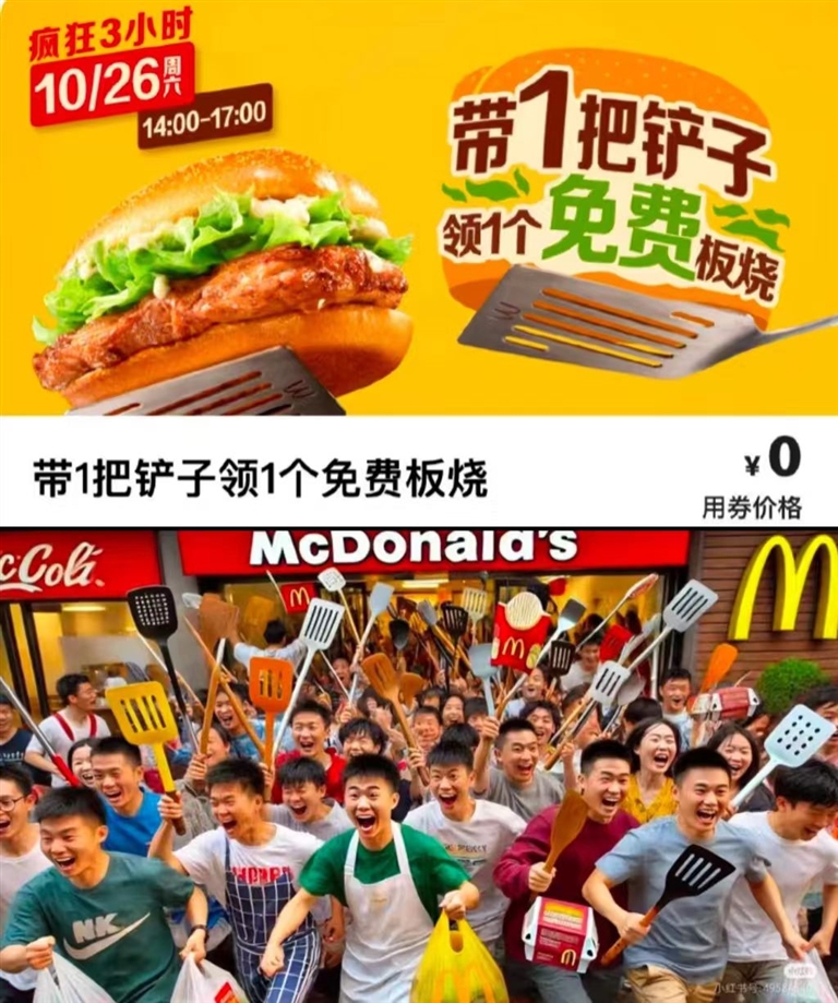 “活动规则故意留白,就是为了激发创造力。”小林说,那段时间网上非常热闹,这场活动迅速演变为全民“铲子大赏”:有人举着饭勺、掏耳勺,甚至比划“空气铲”,麦当劳门店成了大型行为艺术现场。