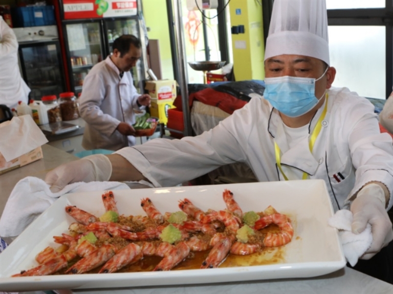 经过激烈比拼,最终十大名菜“出炉”:蒜蓉开背虾、剁椒小白龙、金丝黄鱼卷、糖醋带鱼、椒盐虾虫孱、虾虫孱煎蛋、椒盐皮皮虾、海鲜双面煎、鲳鱼粉丝汤、蟹炒年糕。